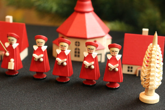 赤い聖歌隊と教会 クリスマスオーナメント ドイツ 木製 ザイフェン