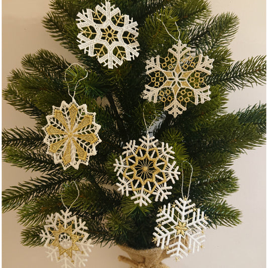 スノークリスタル6枚セット ゴールド 金 レース ドイツ ツリー プラウエンレース 繊細