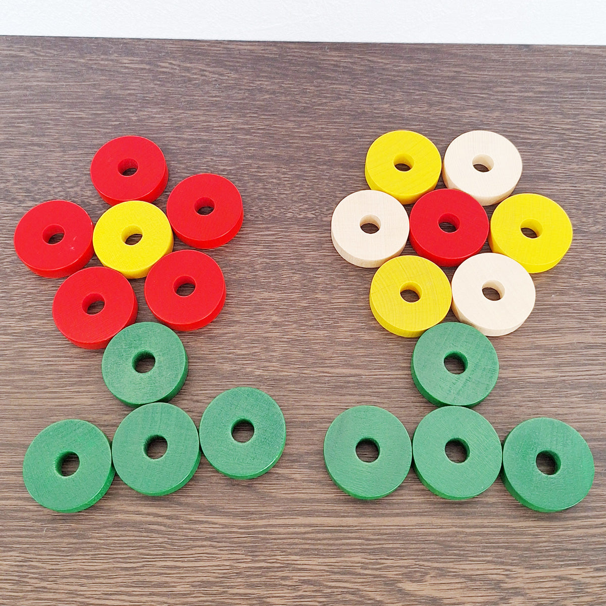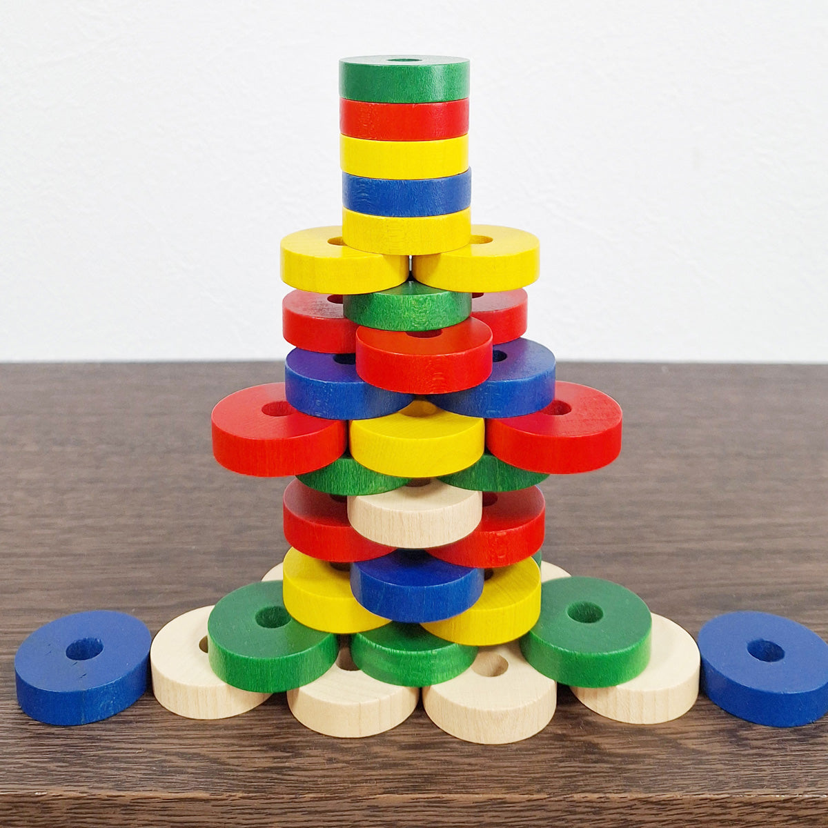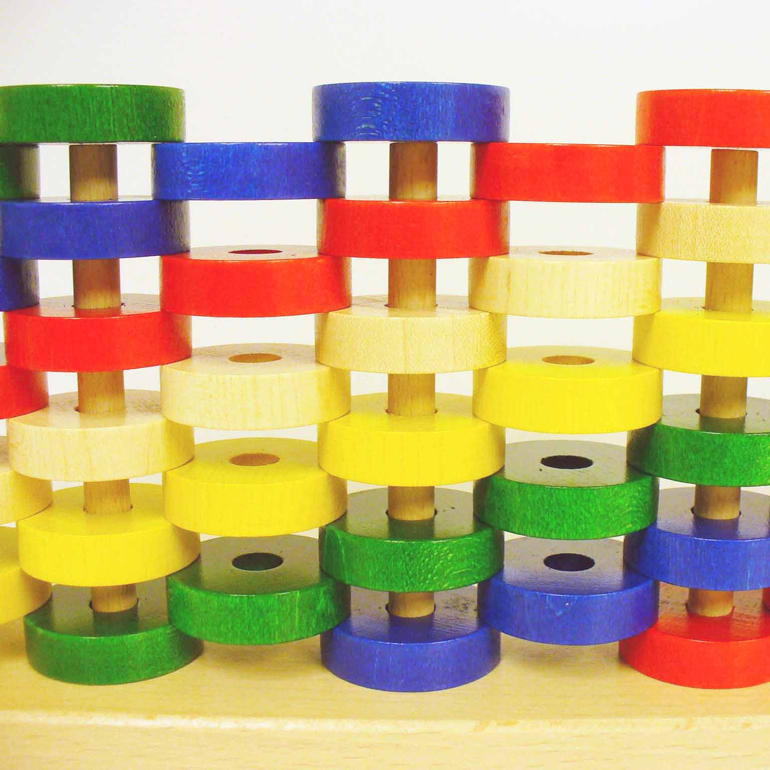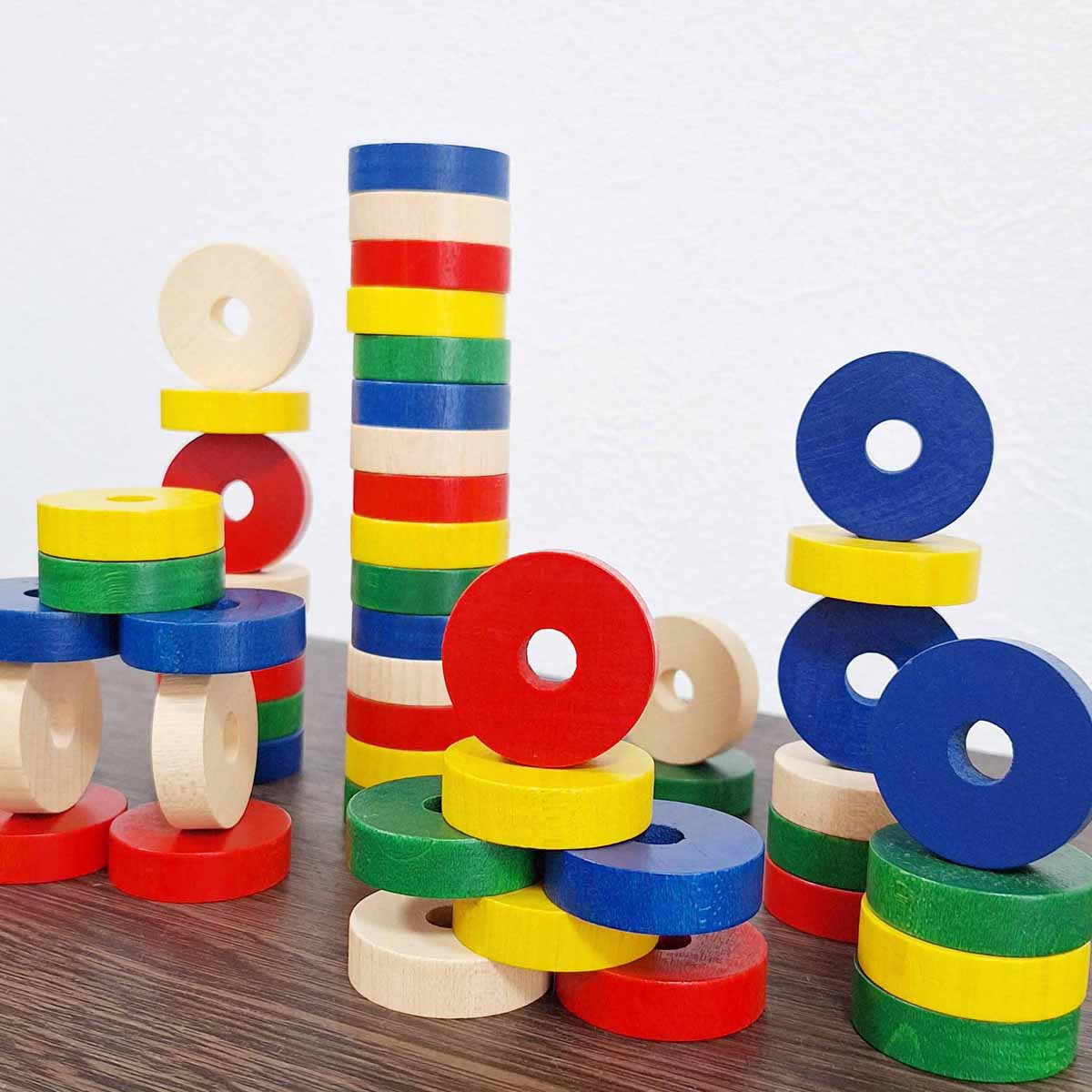 丸い積木として遊んだり、模様を作ったり、小さなお子さまの手で扱いやすい玩具です。